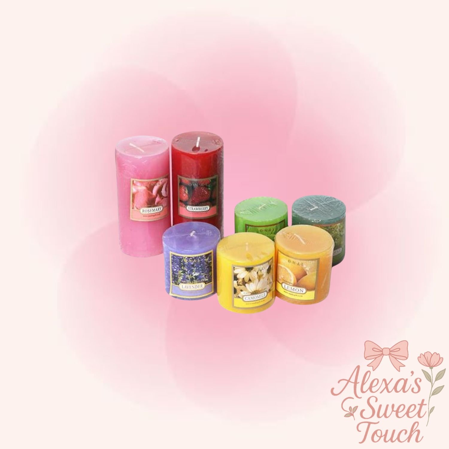 Pequeñas velas decorativas con aromas suaves.